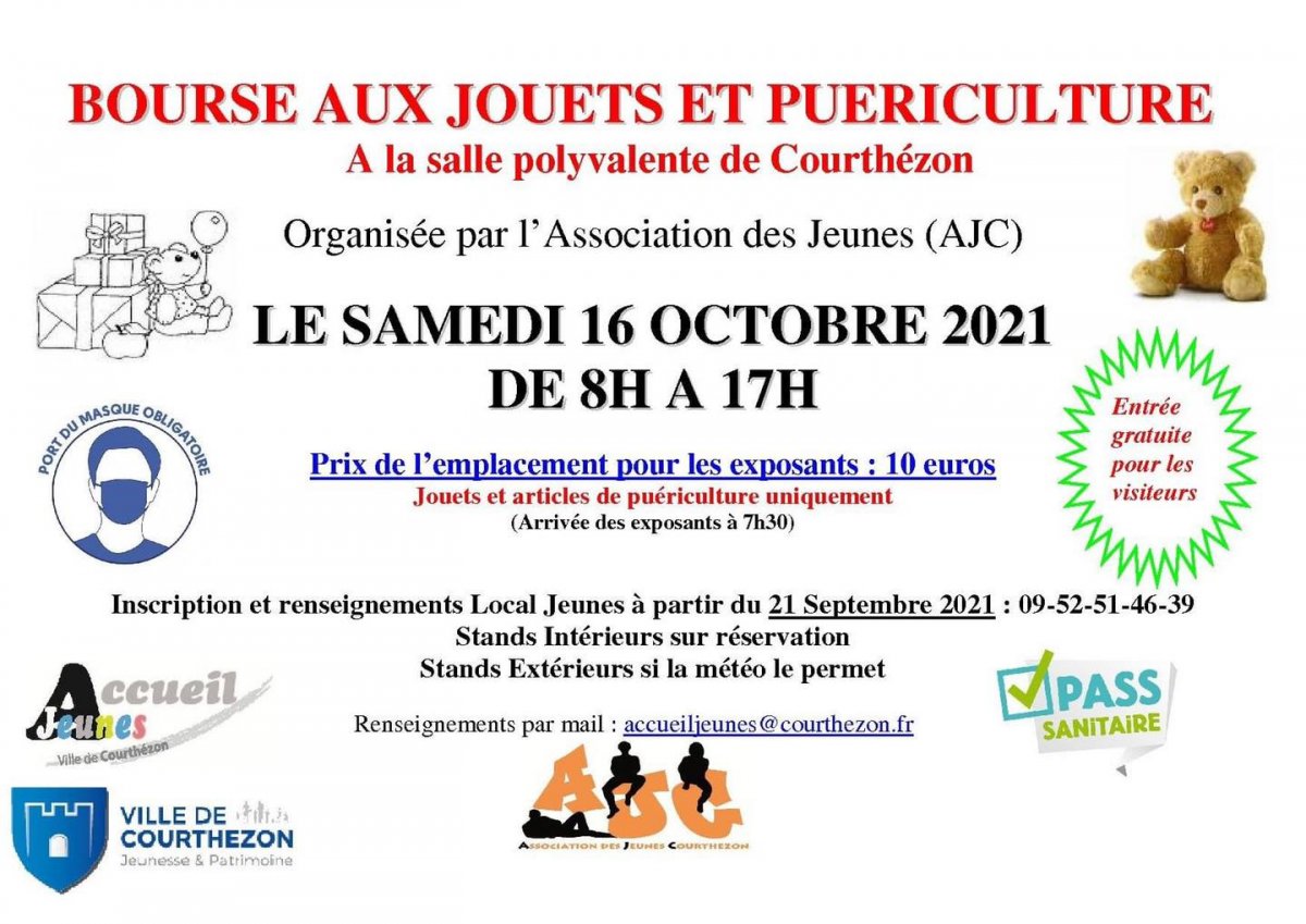 L’AJC (Association des Jeunes de Courthézon) organise une bourse aux jouets et puériculture, le samedi 16 octobre 2021 de 8h à 17h à la salle polyvalente (Boulevard Jean Vilar).