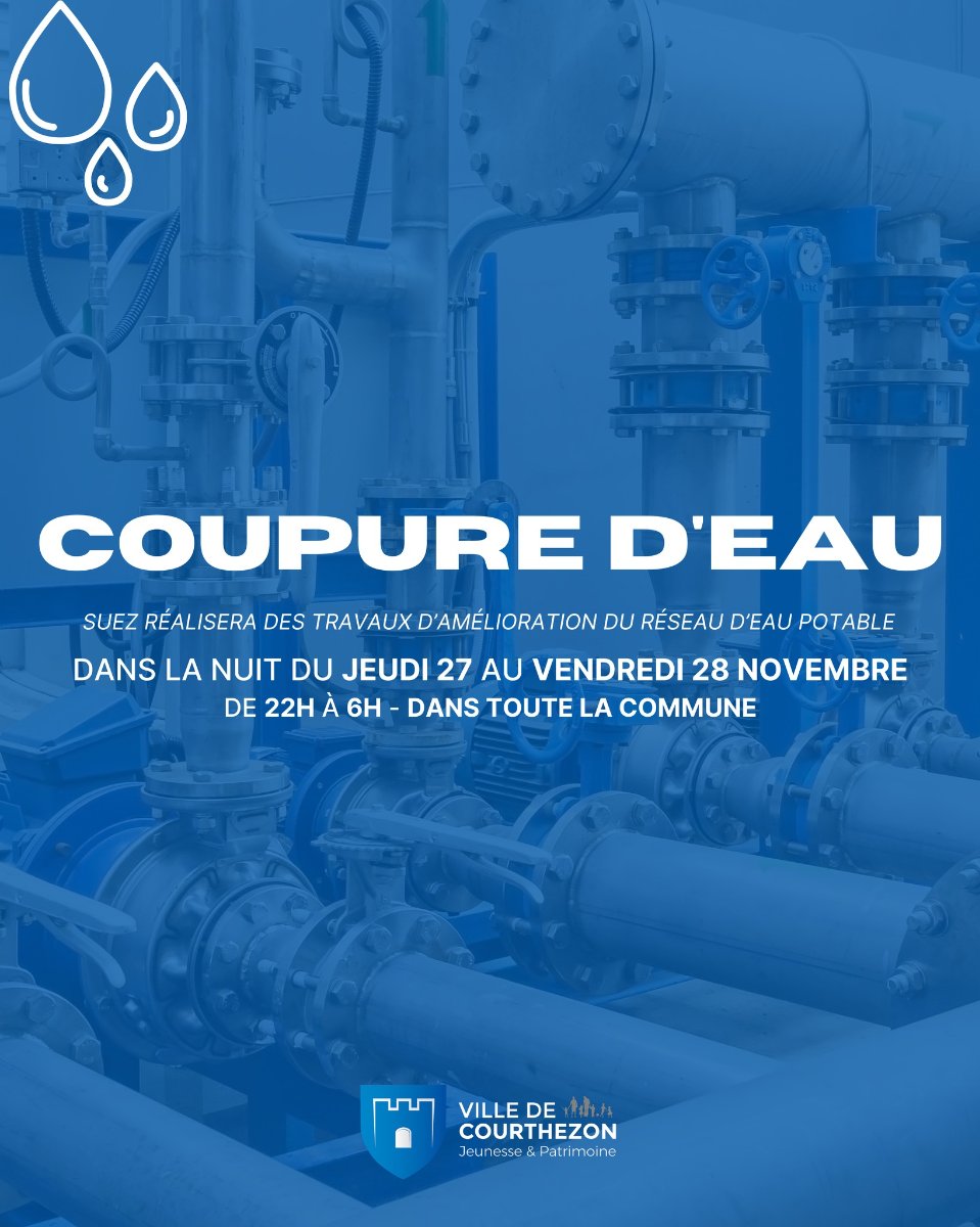 Dans le cadre des opérations d’entretien et d’amélioration du réseau d’eau potable, SUEZ Eau France, procédera à une coupure d’eau générale sur la commune.