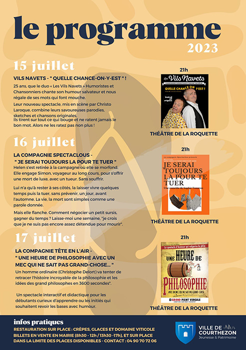C’est ce week-end, Courthézon va vivre au rythme des trois coups et des levés de rideaux, et pour l’occasion la ville s’est mise aux couleurs du Festival OFF d’Avignon.