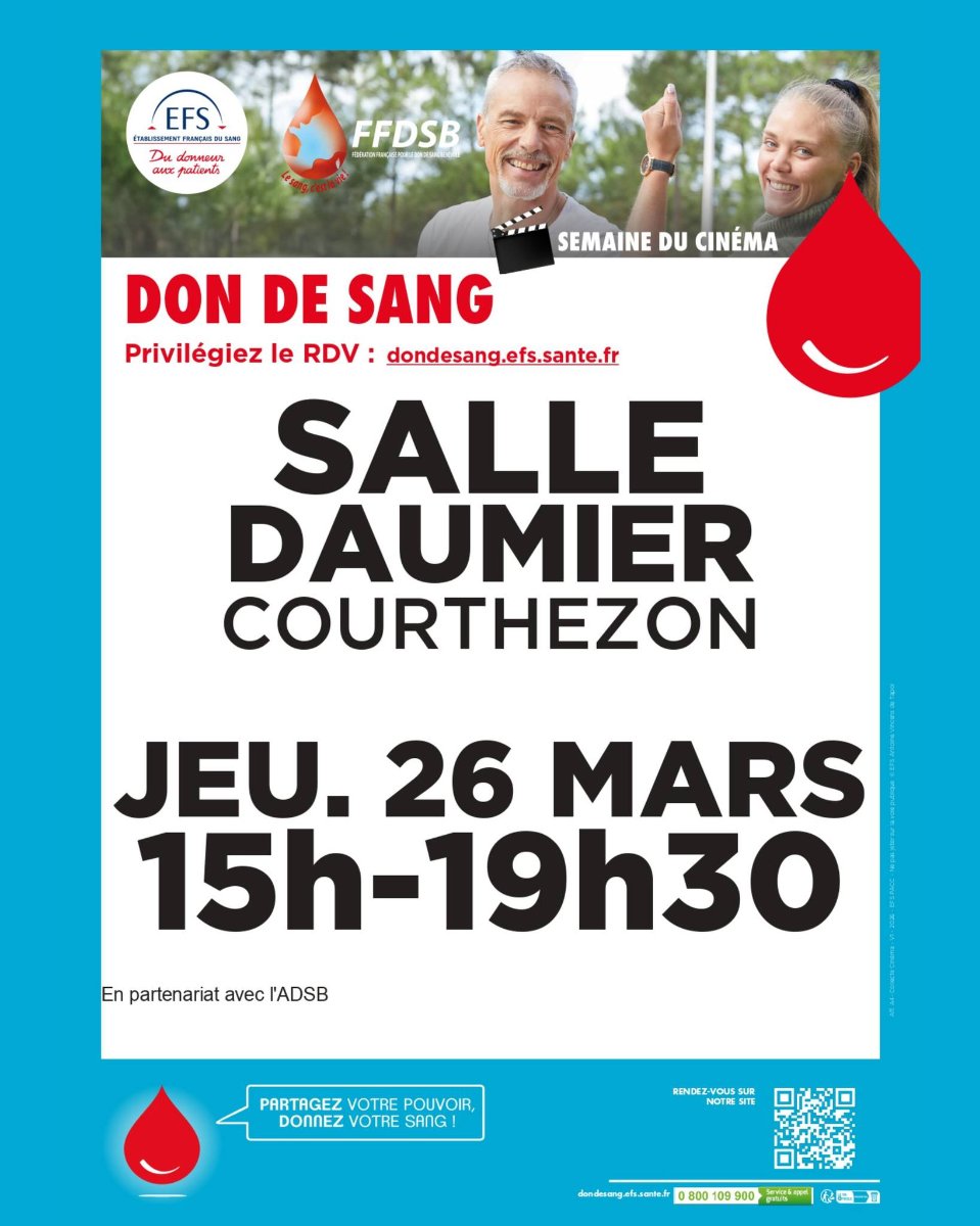 Les besoins en sang restent quotidiens, l’acte volontaire et bénévole de donner votre sang est irremplaçable. Rendez-vous donc jeudi 26 mars de 15h à 19h30 à la Salle Daumier !