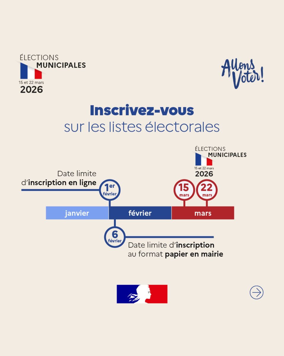 Pour pouvoir voter, il est obligatoire d’être inscrit sur les listes électorales, si ce n’est pas encore le cas pouvez effectuer cette démarche jusqu’au :