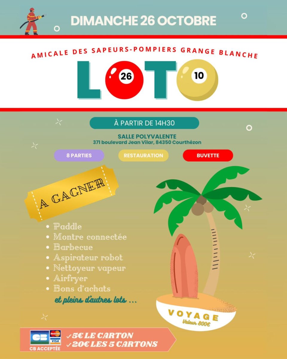 Rendez-vous dimanche 26 octobre, dès 14h30 à la Salle Polyvalente pour une après-midi de jeu, de partage et avec un peu de chance, de cadeaux !
