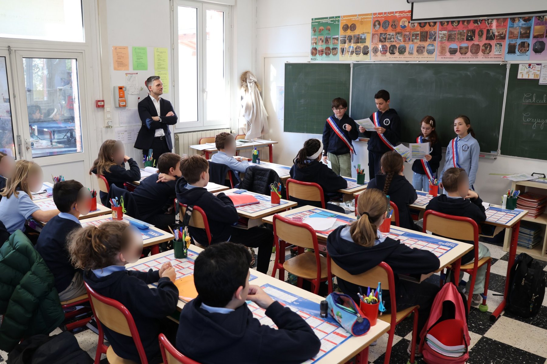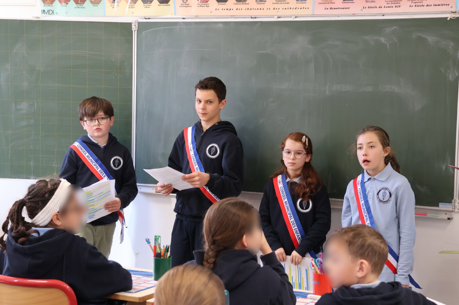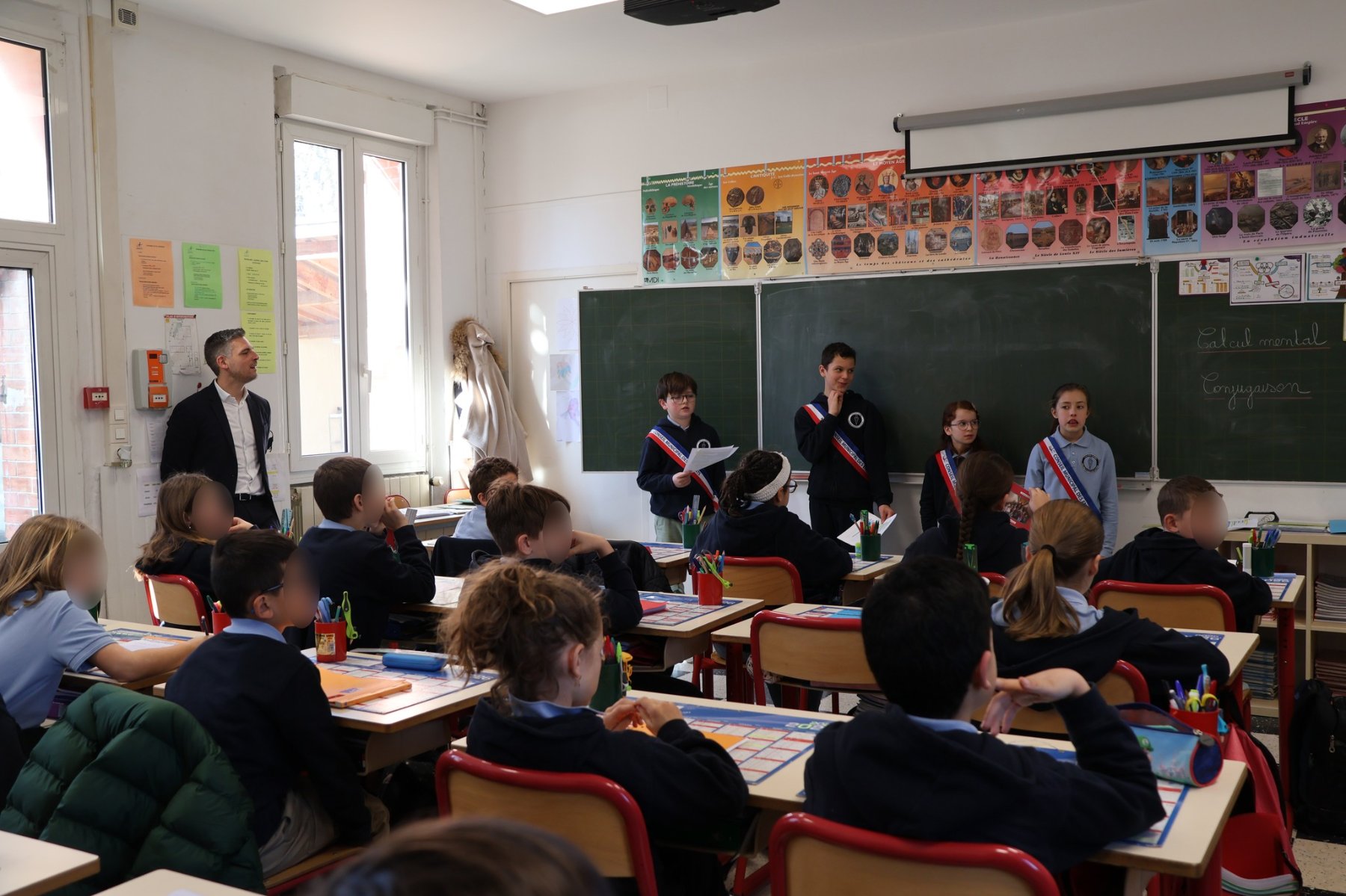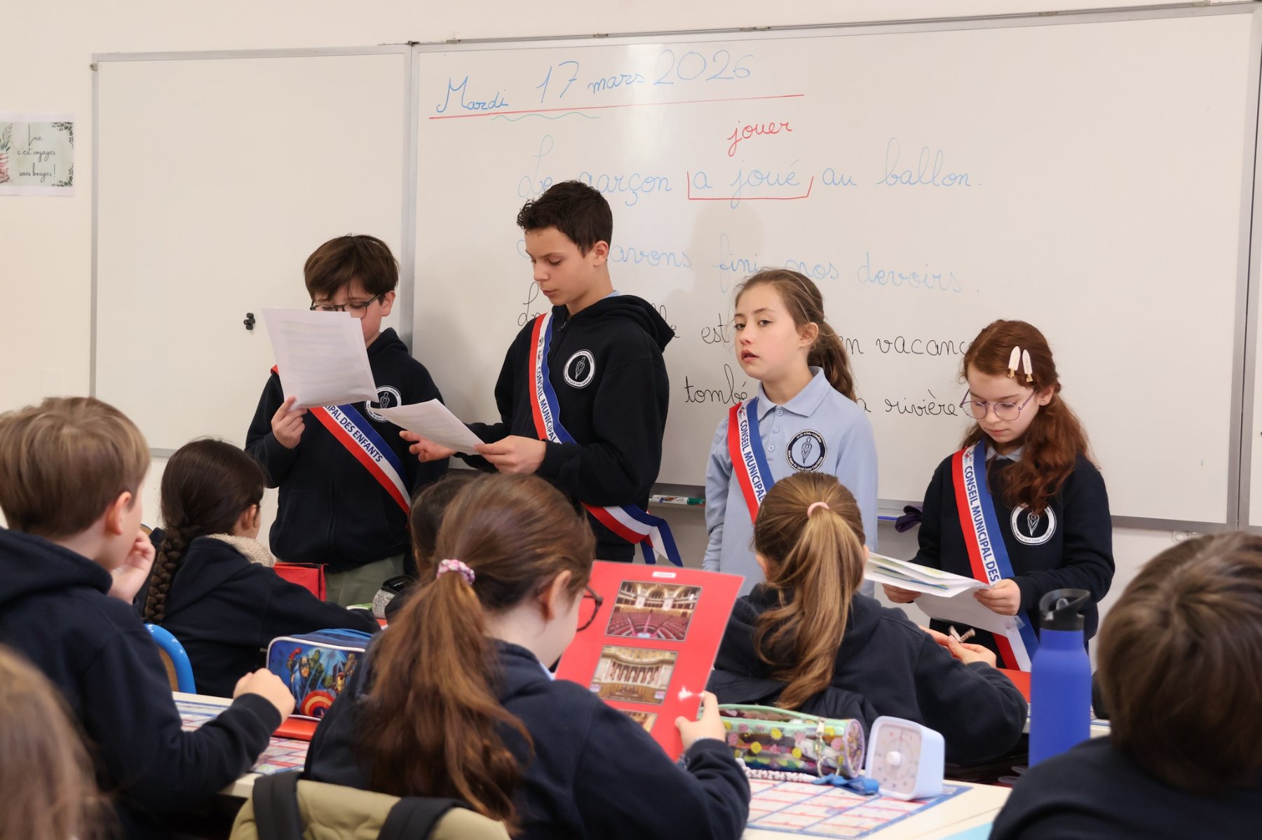 Les jeunes élus, accompagnés par M. le Maire, se sont rendus dans les classes du CE1 au CM2 de l’école Notre-Dame. Au programme : présentation du Sénat et explication du rôles des élus, adultes et enfants.