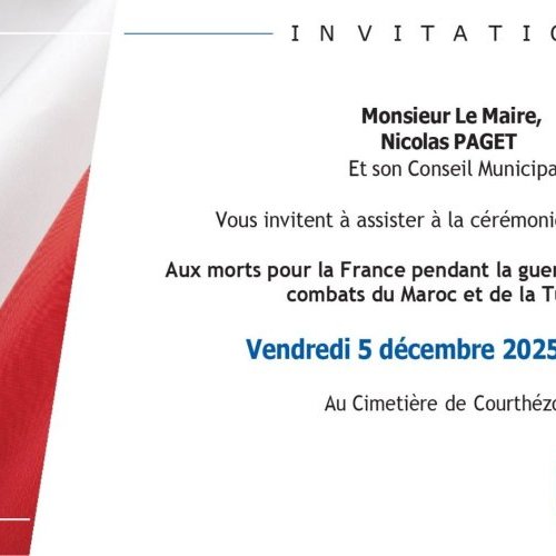 M. Le Maire et son Conseil Municipal, vous invitent à assister à la cérémonie d’hommage aux morts pour la France pendant la guerre d’Algérie et les combats du Maroc (…)