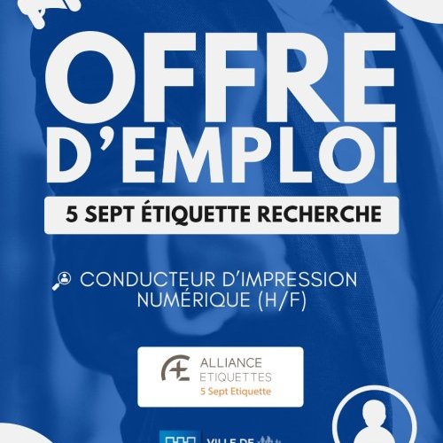 L’entreprise Courthézonnaise 5 Sept Etiquette est à la recherche de son futur Conducteur d’impression numérique (H/F).