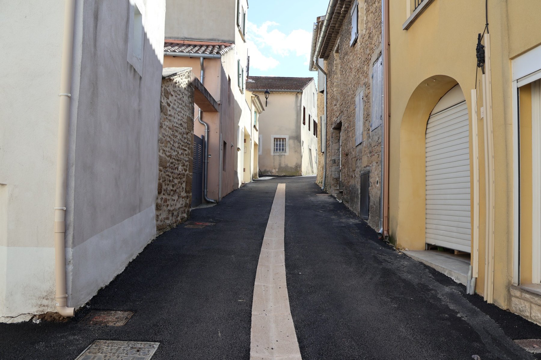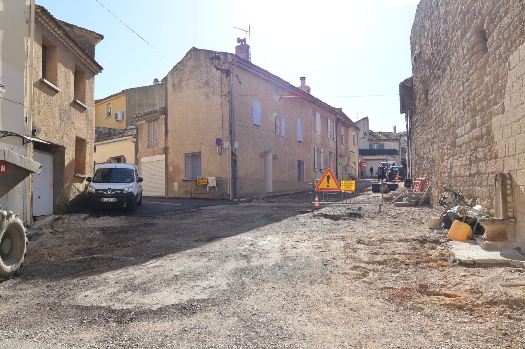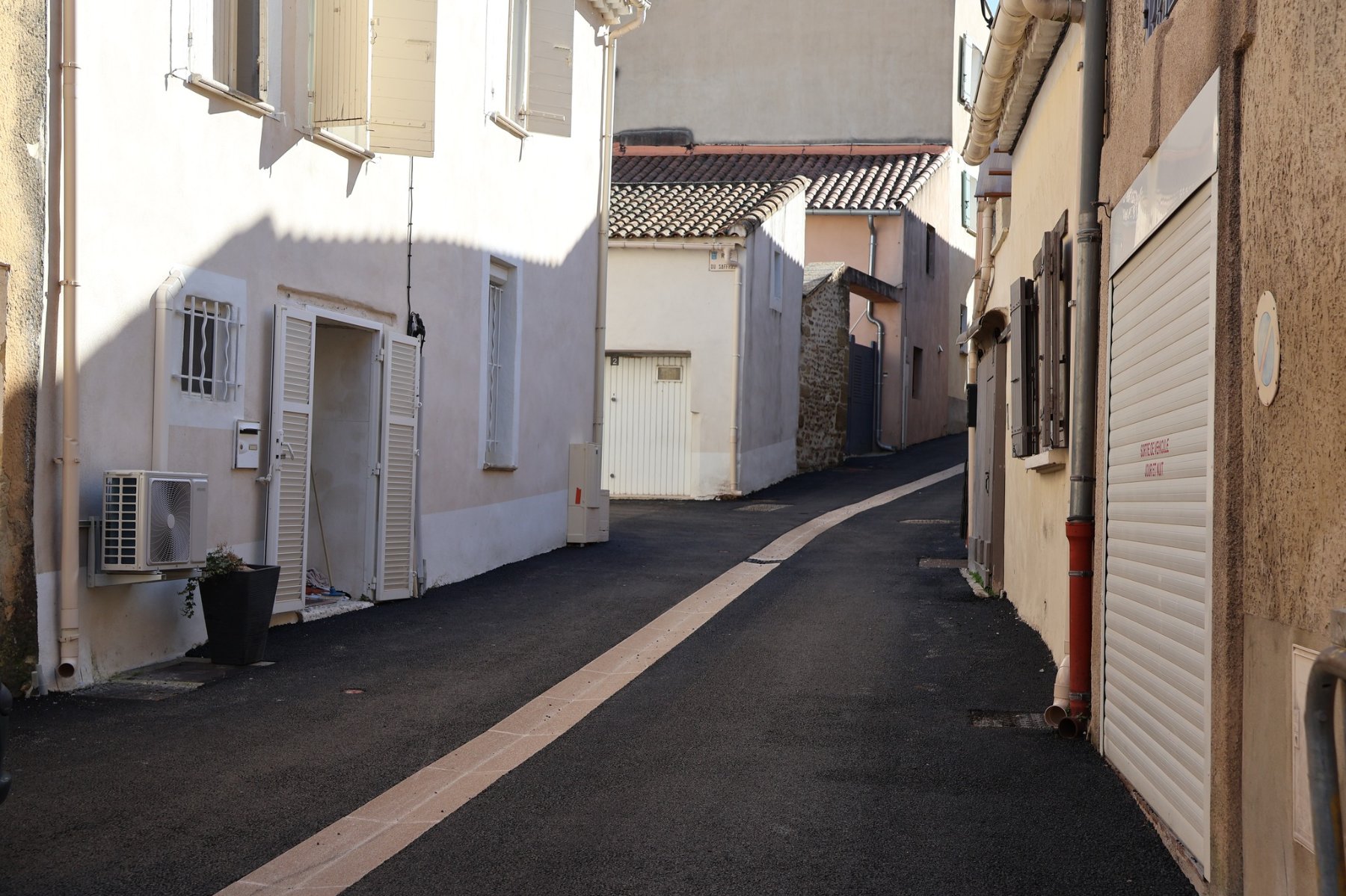 Alors que les dernières démolitions des anciens revêtements et trottoirs se terminent, certaines rues sont déjà recouvertes de leur nouvel enrobé et équipé d’un nouveau caniveau central en attendant d’être bordées de nouveaux trottoirs et de marquages au sol pour certains secteurs.