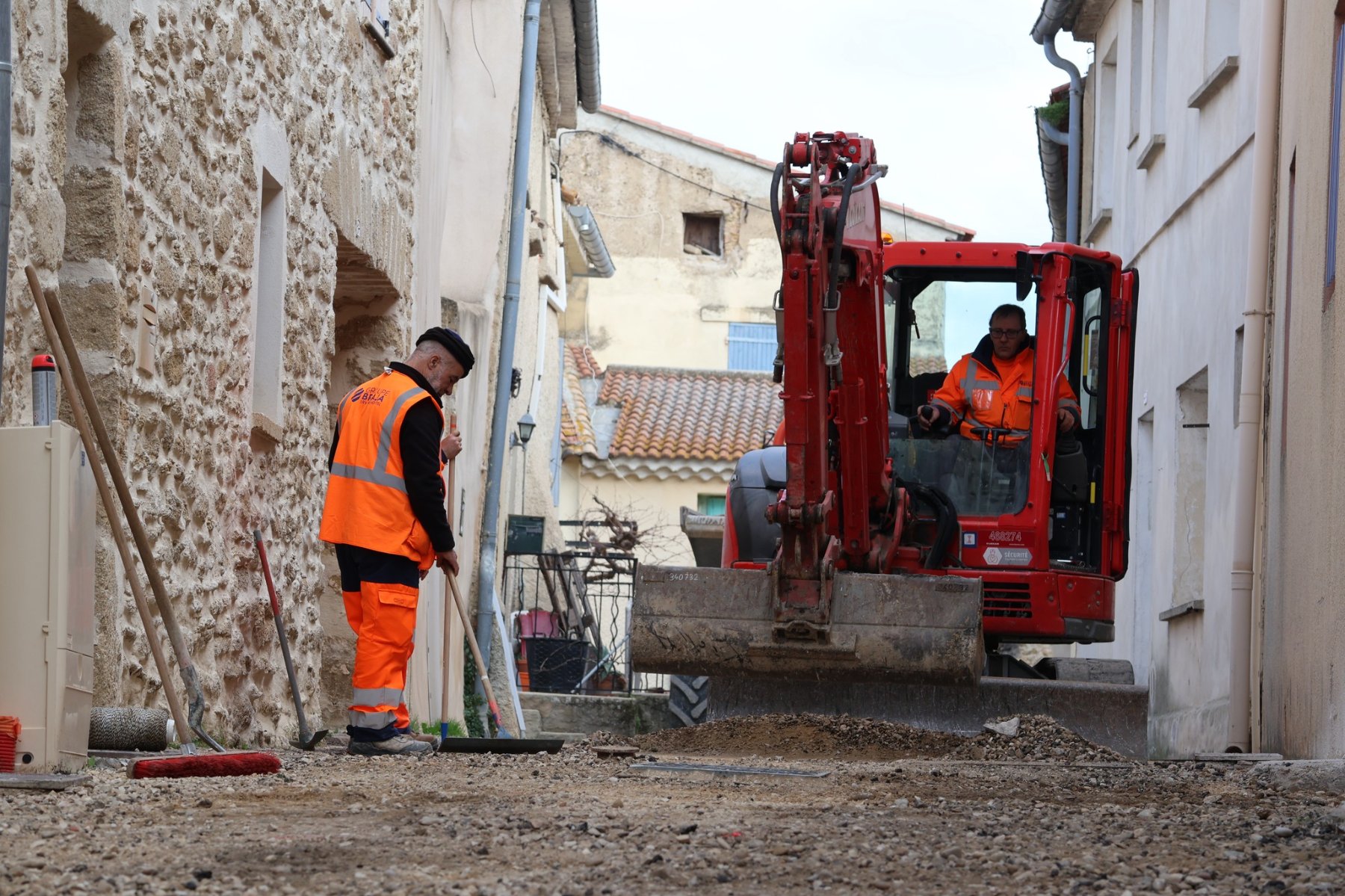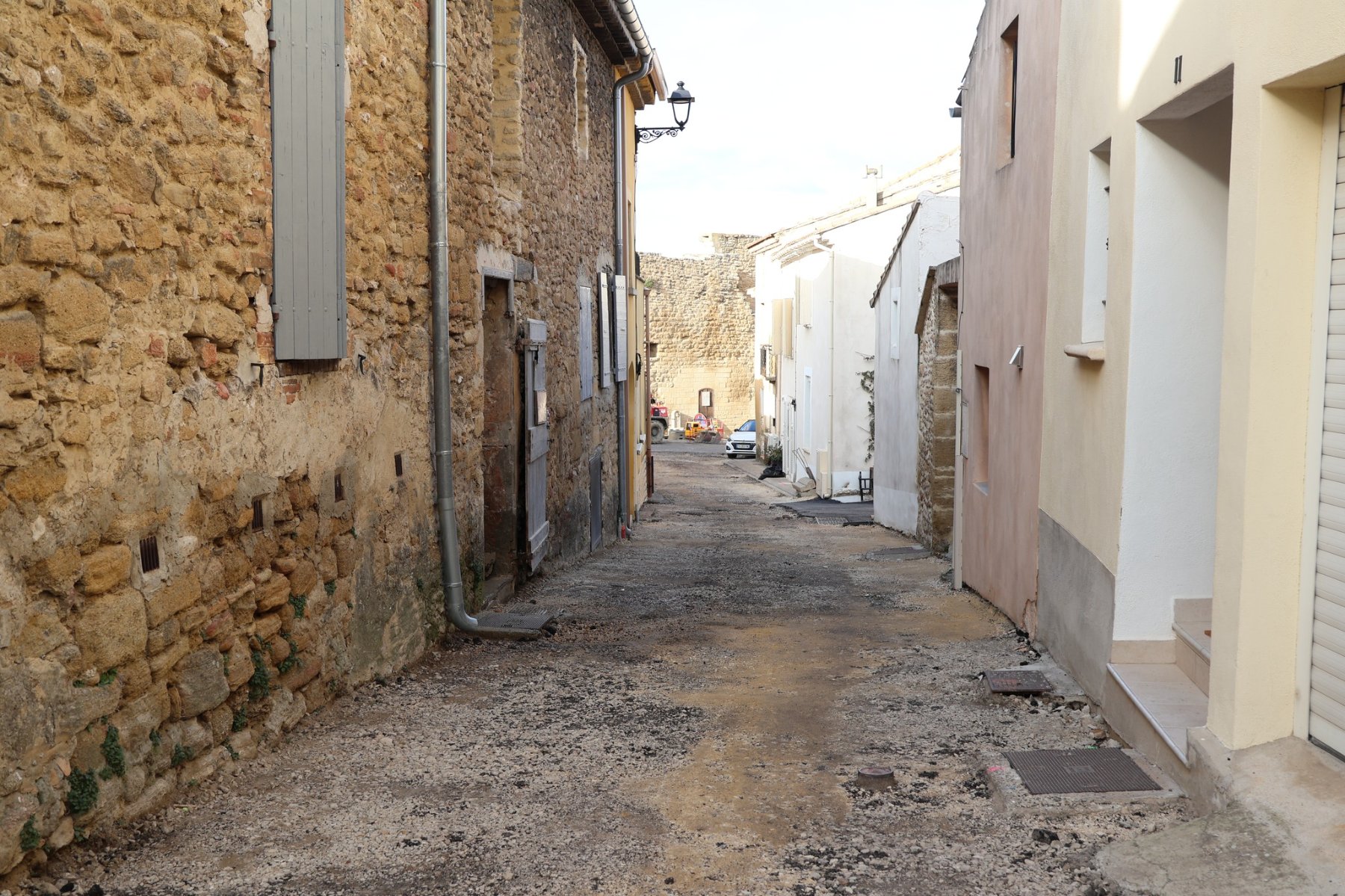 L’ensemble des anciens revêtements et trottoirs sont en cours de démolition dans les rues concernées. Bientôt ces rues seront recouvertes de nouveaux enrobés, équipés d’un nouveau caniveau central, et bordés de nouveaux trottoirs.