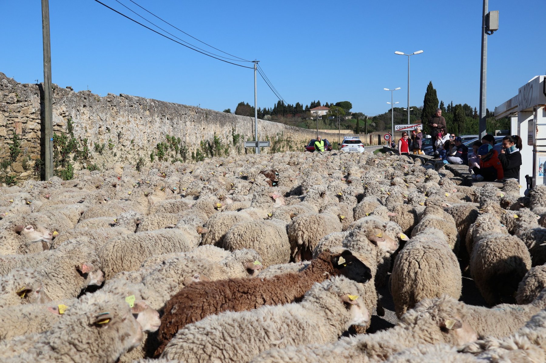 Après quelques semaines entre Courthézon et Châteauneuf-du-Pape en éco-paturage dans les vignes, le troupeau de brebis mérinos à rejoint la ferme des Eygaillottes offrant un moment unique aux nombreux Courthézonnais présents sur les bords des routes empruntées par ces drôles d’usagers.
